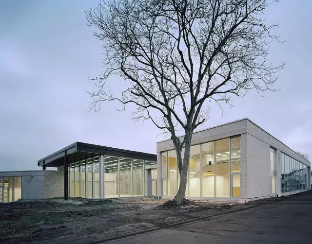 該幼兒園混凝土與明黃色的搭配高雅不失活力。雙翼構(gòu)造環(huán)抱住室外庭院,而大面積的落地玻璃窗讓室外美景滿滿映入眼簾。建筑一側(cè)外觀是磚飾面,另一側(cè)主要是玻璃幕墻外立面,混凝土結(jié)構(gòu),室內(nèi)直接暴露高精度清水混凝土,明黃色作為點(diǎn)綴色,讓幼兒園充滿活力