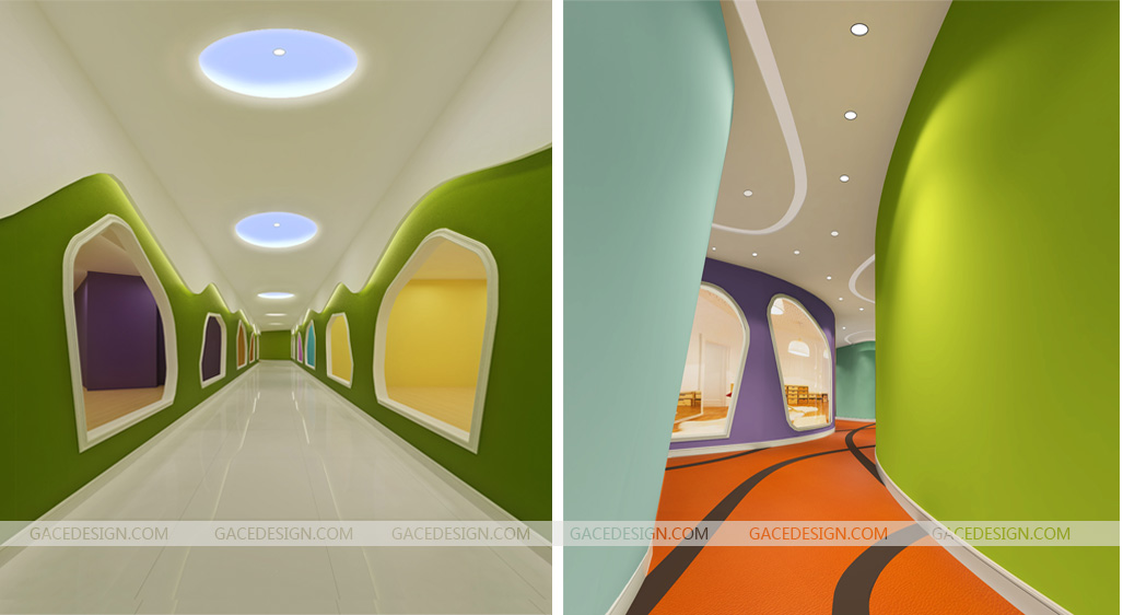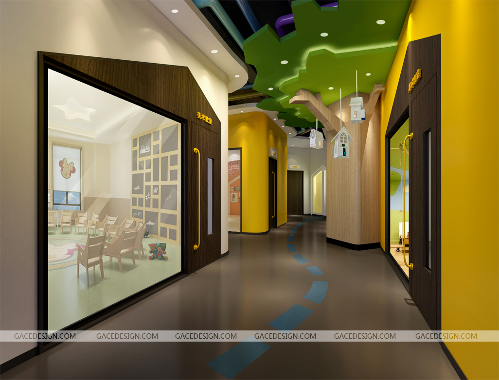 走廊具有行為指導(dǎo)的功能,這種功能是方向和指導(dǎo)幼兒左行右行倆方面,這個(gè)功能對(duì)魚那些剛剛進(jìn)入幼兒園,對(duì)幼兒園還不是很了解而找不到自己教師的孩子們幫助非常大。