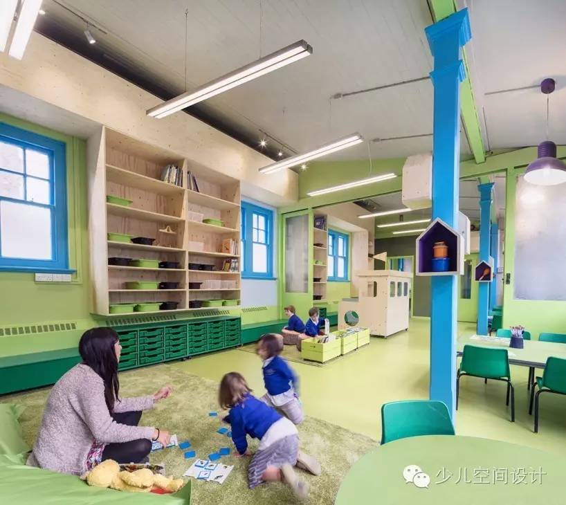 在早教中心,最常見的色彩搭配為藍、綠、橙、紅等類似的色澤飽和度較高的顏色,這種色彩不僅給人感覺積極向上、活潑天真,還能潛隱默化地影響孩子們的“性格色彩”簡約清新的設計,好似渾然天成。